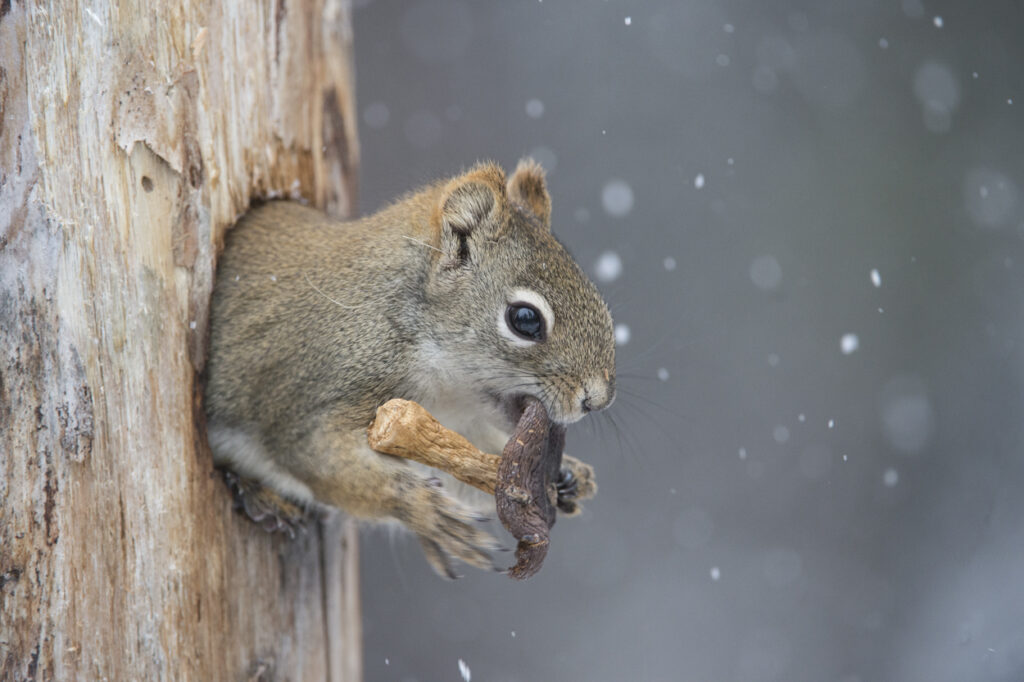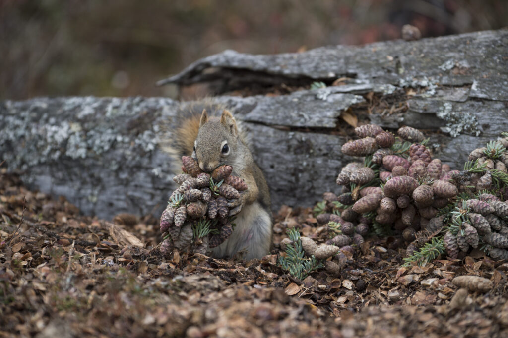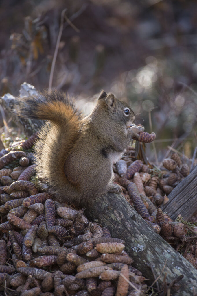 Each fall red squirrels (Tamiasciurus douglasii) begin a frenzied preperation for the coming Alaskan winter by gathering mushrooms and spruce cones. Their hoarding behavior provides crucial survival benefits.Read more: HOARDING TO SURVIVE